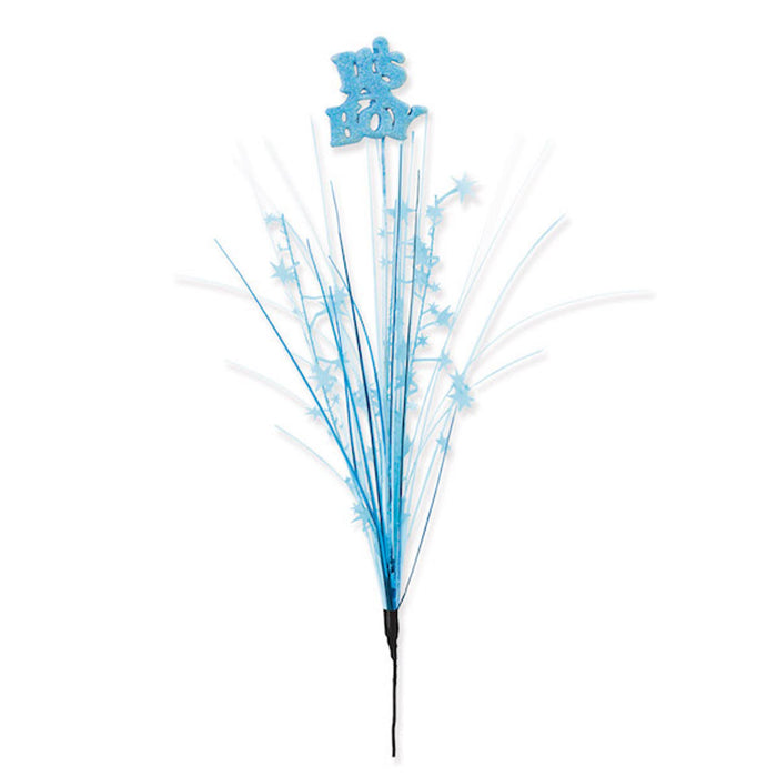 The Gltrd It's A Boy Metallic Star Spray is 18 inches long and features a mix of blue, silver, and white metallic stars in various sizes. It's easy to use as a standalone decoration or as a complement to other baby shower décor.